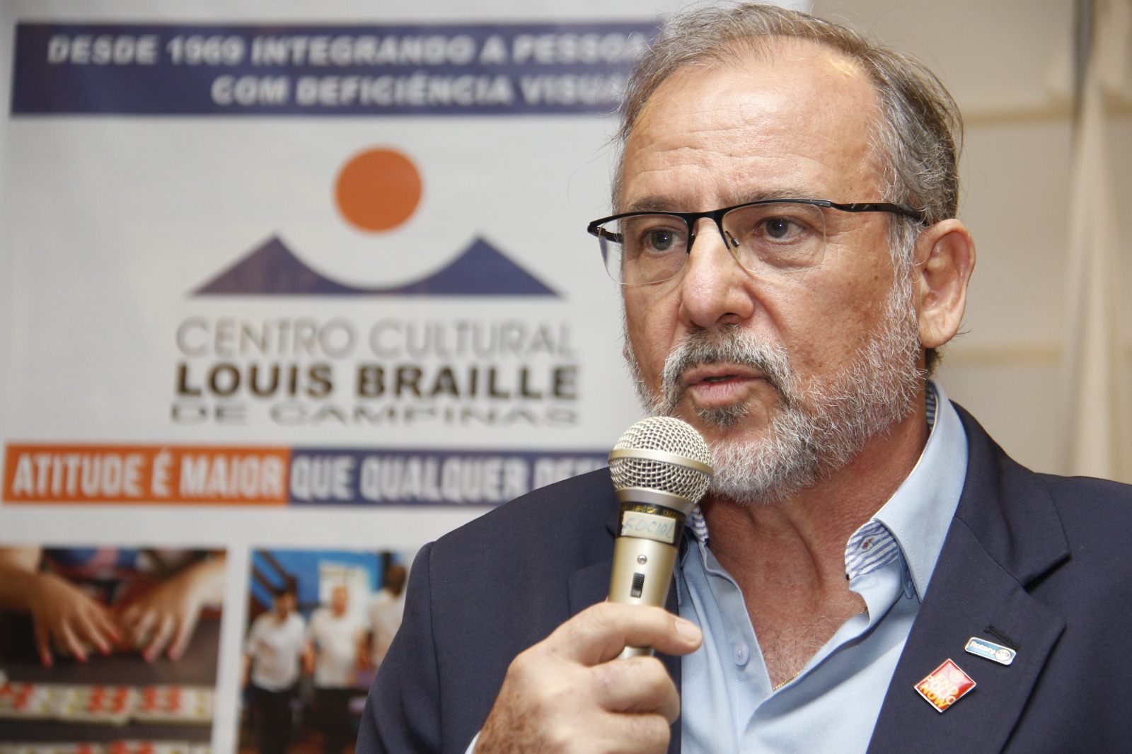O presidente do Braille, sr. Eduardo Francisco Jakubowski, destacou a trajetória de desafios e conquistas nesses 54 anos, e fez um agradecimento especial aos colaboradores, aos parceiros da instituição, como próprio Rotary, e a todos os convidados presentes.
